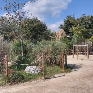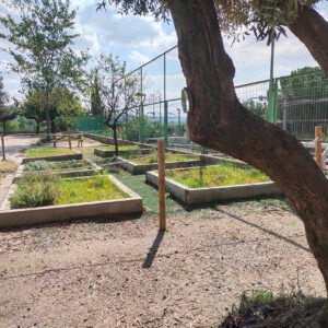 Al pati de la nostra escola hi ha un bosc mediterrani amb diferents arbres, arbustos, un hort escolar i una bassa. Podem trobar fins a dinou espècies diferents d’arbres: xiprer, lledoner, olivera, morera, codonyer, etc. I d’arbustos tenim fins a vint-i-tres: lliri blau, romaní, margarida, jonça llentiscle…