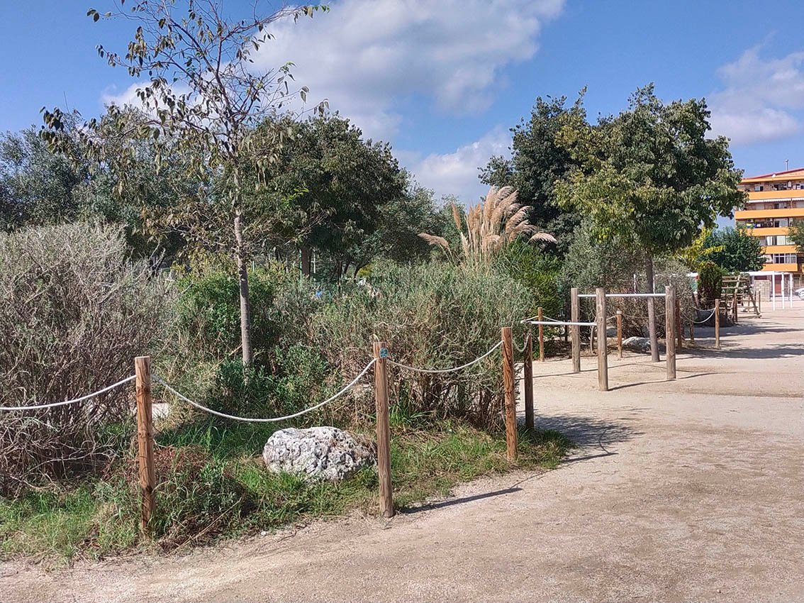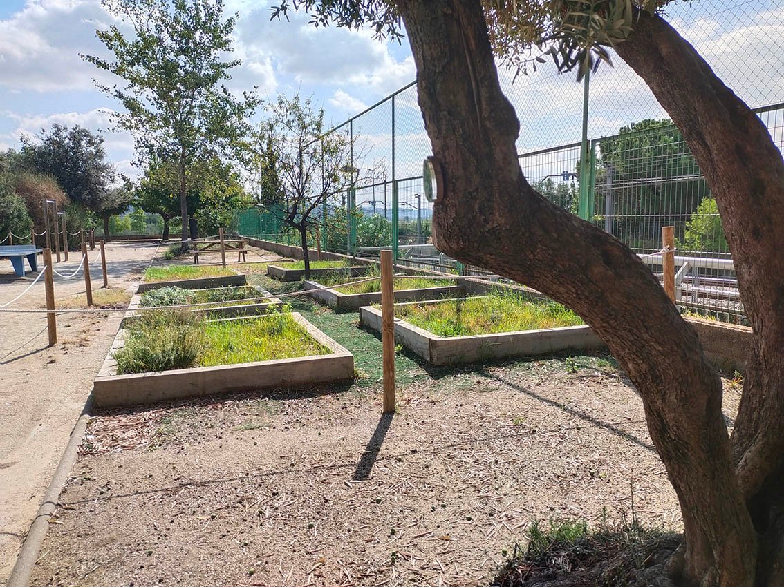 Al pati de la nostra escola hi ha un bosc mediterrani amb diferents arbres, arbustos, un hort escolar i una bassa. Podem trobar fins a dinou espècies diferents d’arbres: xiprer, lledoner, olivera, morera, codonyer, etc. I d’arbustos tenim fins a vint-i-tres: lliri blau, romaní, margarida, jonça llentiscle…